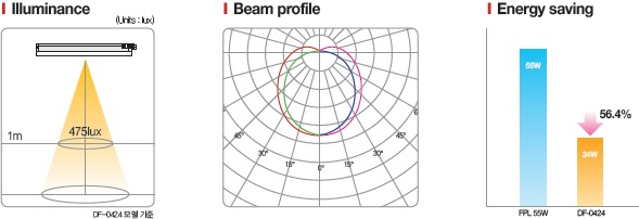 - Save about 1/3 of electrical fees compare to existing fluorescent lamps