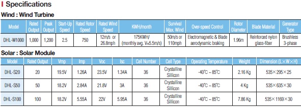- Blade/Generator/Yaw/AD converter/Hybrid charger & Lighting controller